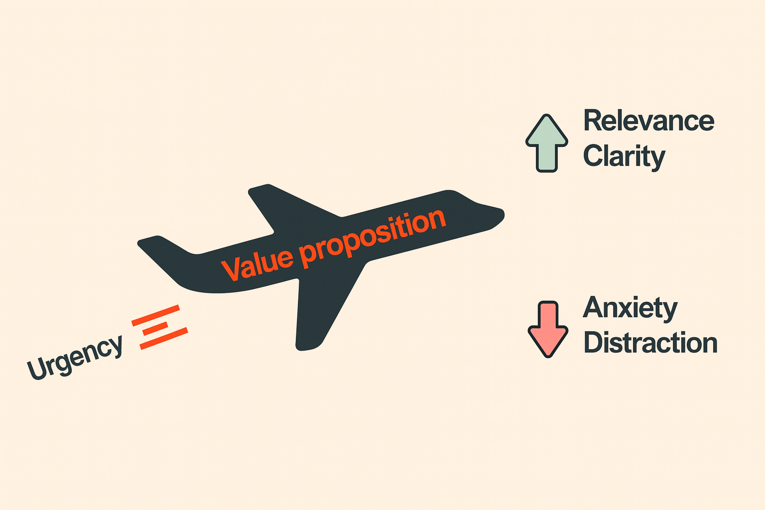 While increased clarity, relevance, and urgency drive conversion up, anxiety pulls it down. Anxiety relates to any fears, doubts, or hesitations that might prevent a user from completing a desired action. If users feel anxious when interacting with your content, you've killed your chances of converting them.